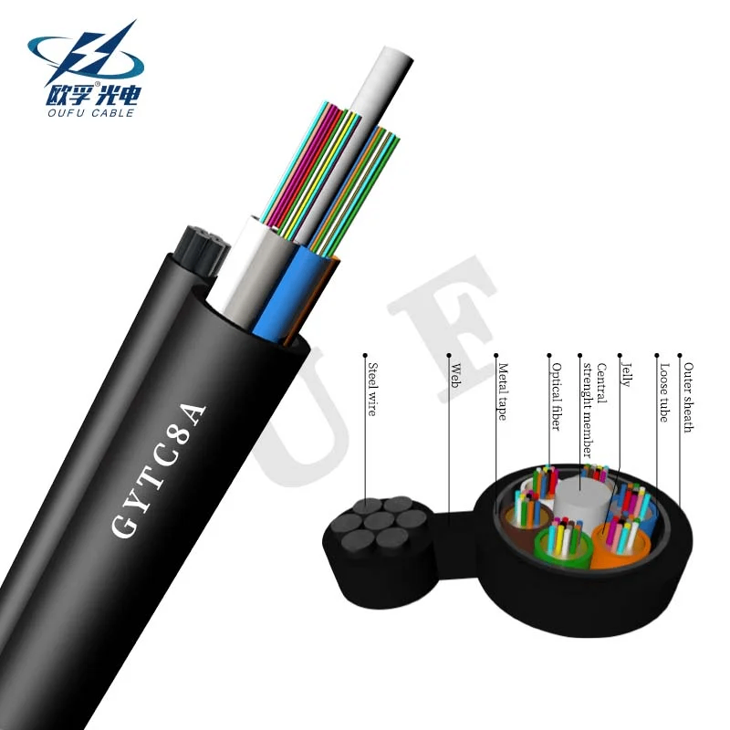 Product Information:In the GYTC8A cable, single-mode/multimode fibers are positioned in the loose tubes, while the loose tubes strand together around metallic central strength member into a compact an