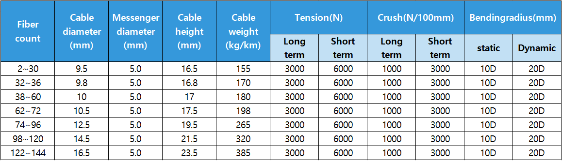 In the GYTC8A cable, single-mode/multimode fibers are positioned in the loose tubes, while the loose tubes strand together around metallic central strength member into a compact and circular cable core, and the water-blocking materials are distributed into interstices of it. After a APL is applied around the cable core, this part of cable accompanied with the stranded wires as the supporting part are completed with a PE sheath to be a figure-8 structure.